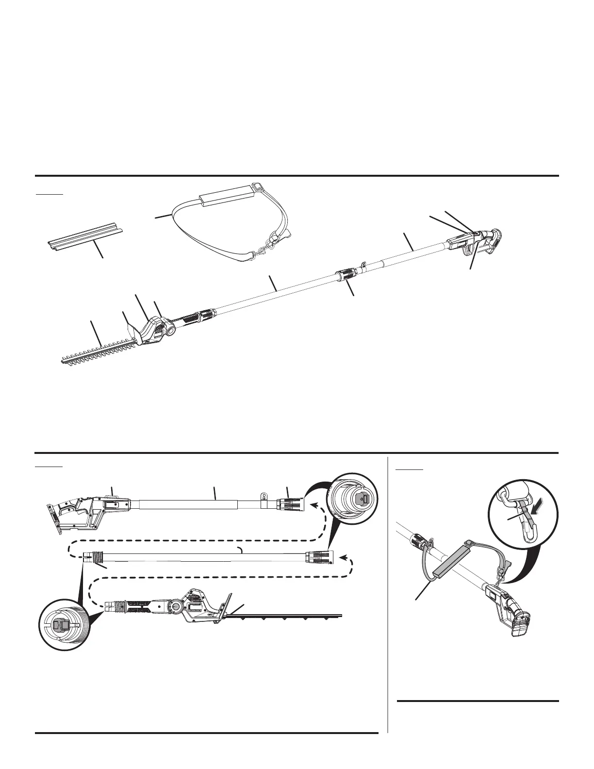 I - Hedge trimmer head (tête du taille-haie, cabezal de podadora de setos)