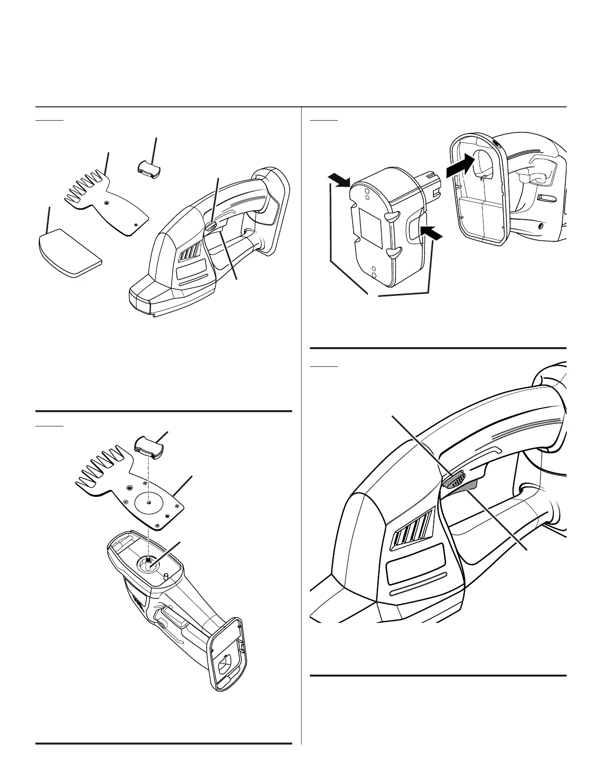 D - Lock-off button (bouton de verrouillage éteindre, botón de seguro de