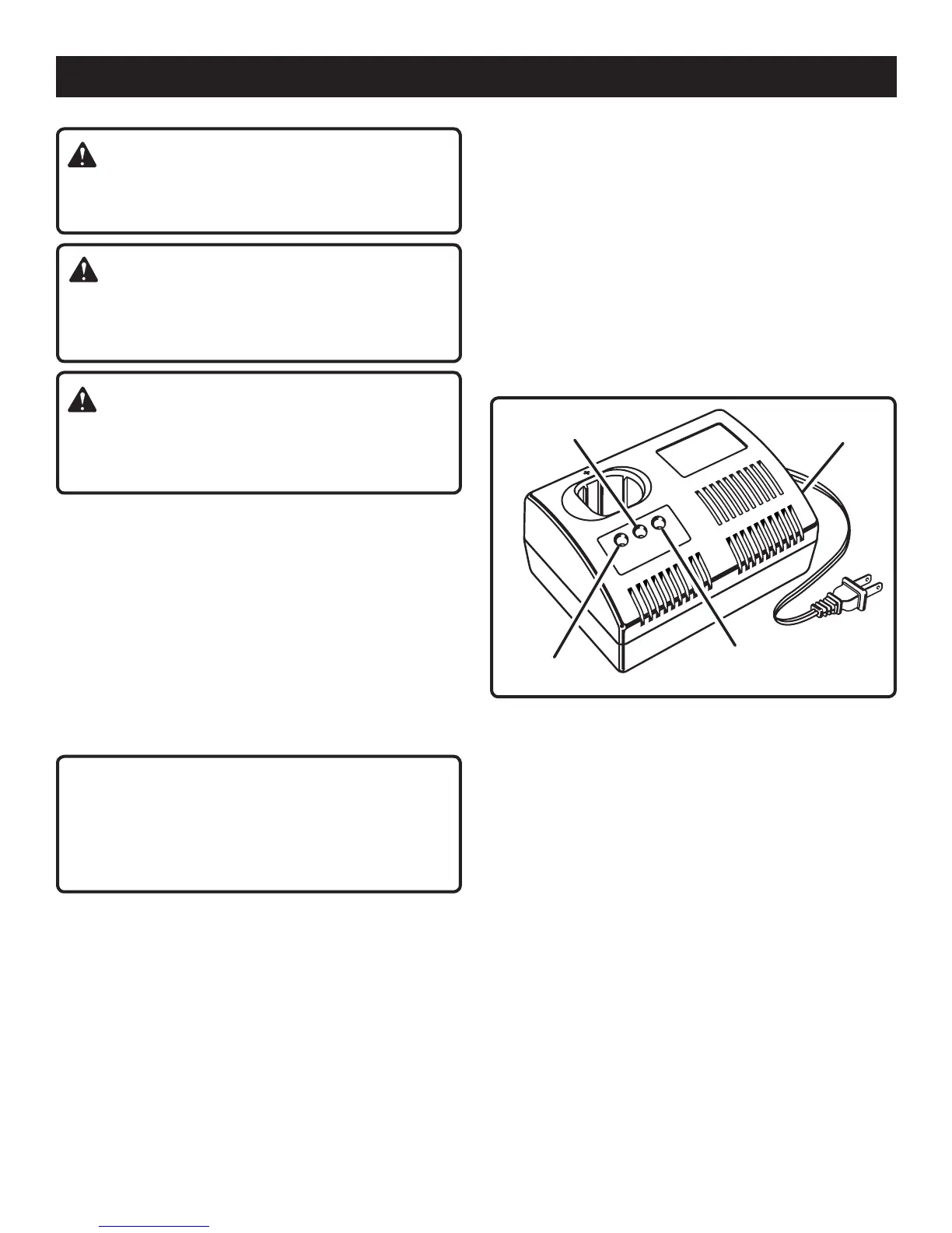 n Green LED on = Fully charged and in maintenance charge