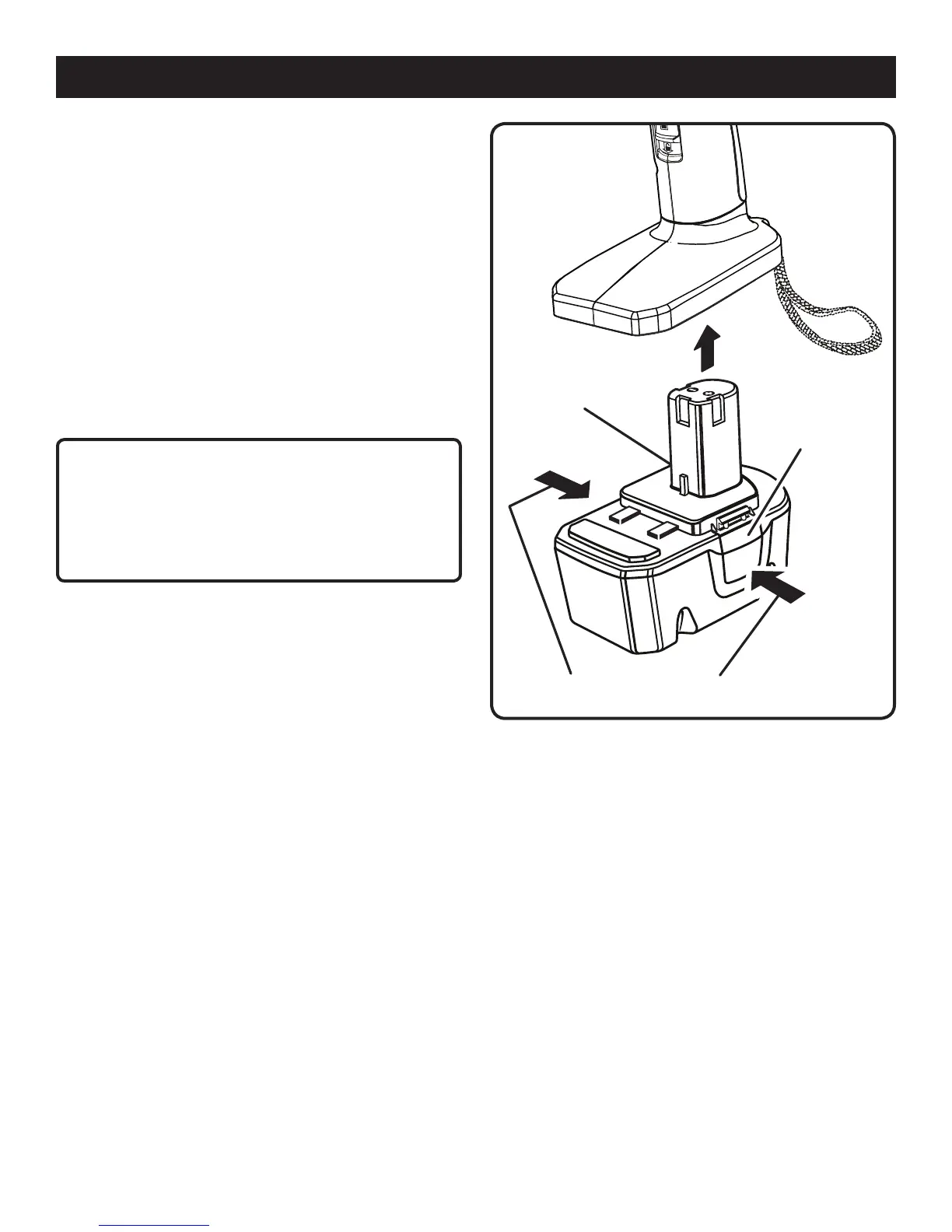 n Depress the latches on the side of battery pack.