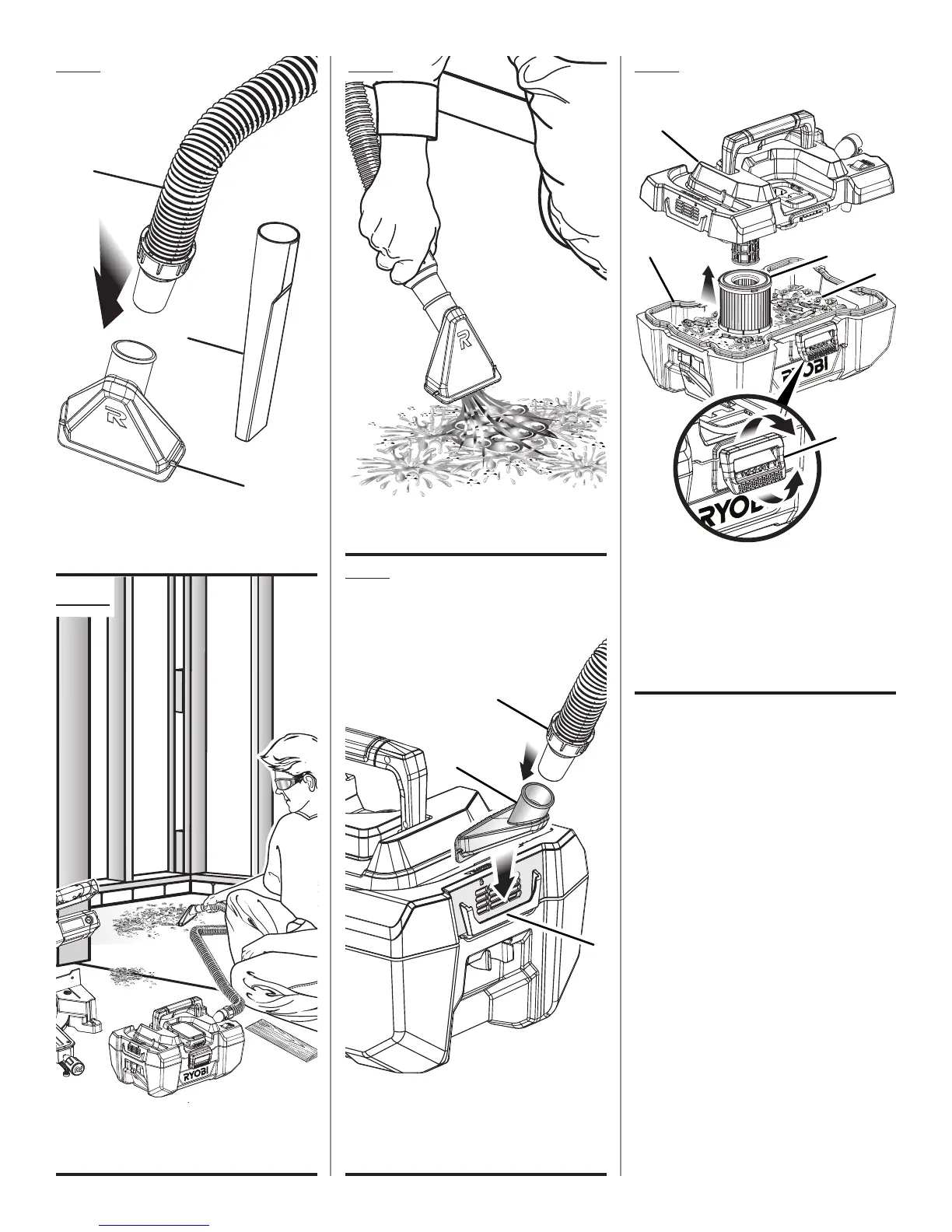 B - Utility nozzle (suceur utilitaire, boquilla de servicio)