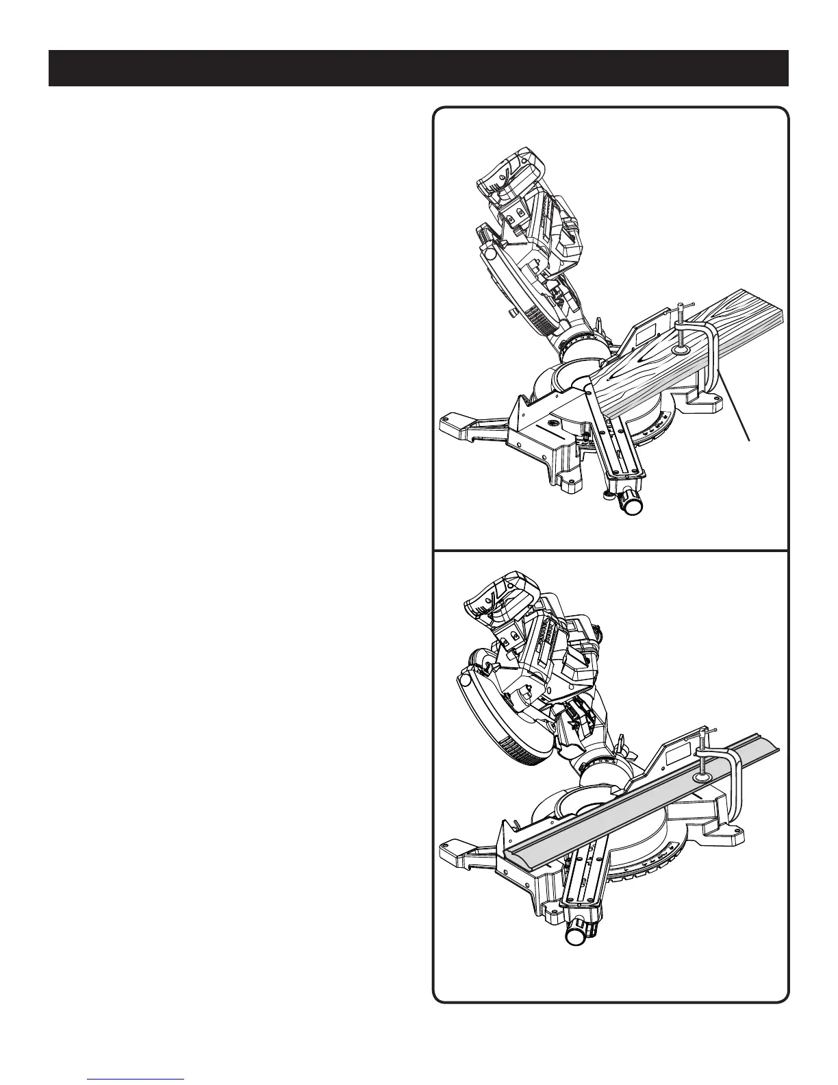 To make this type of cut the miter table must be rotated