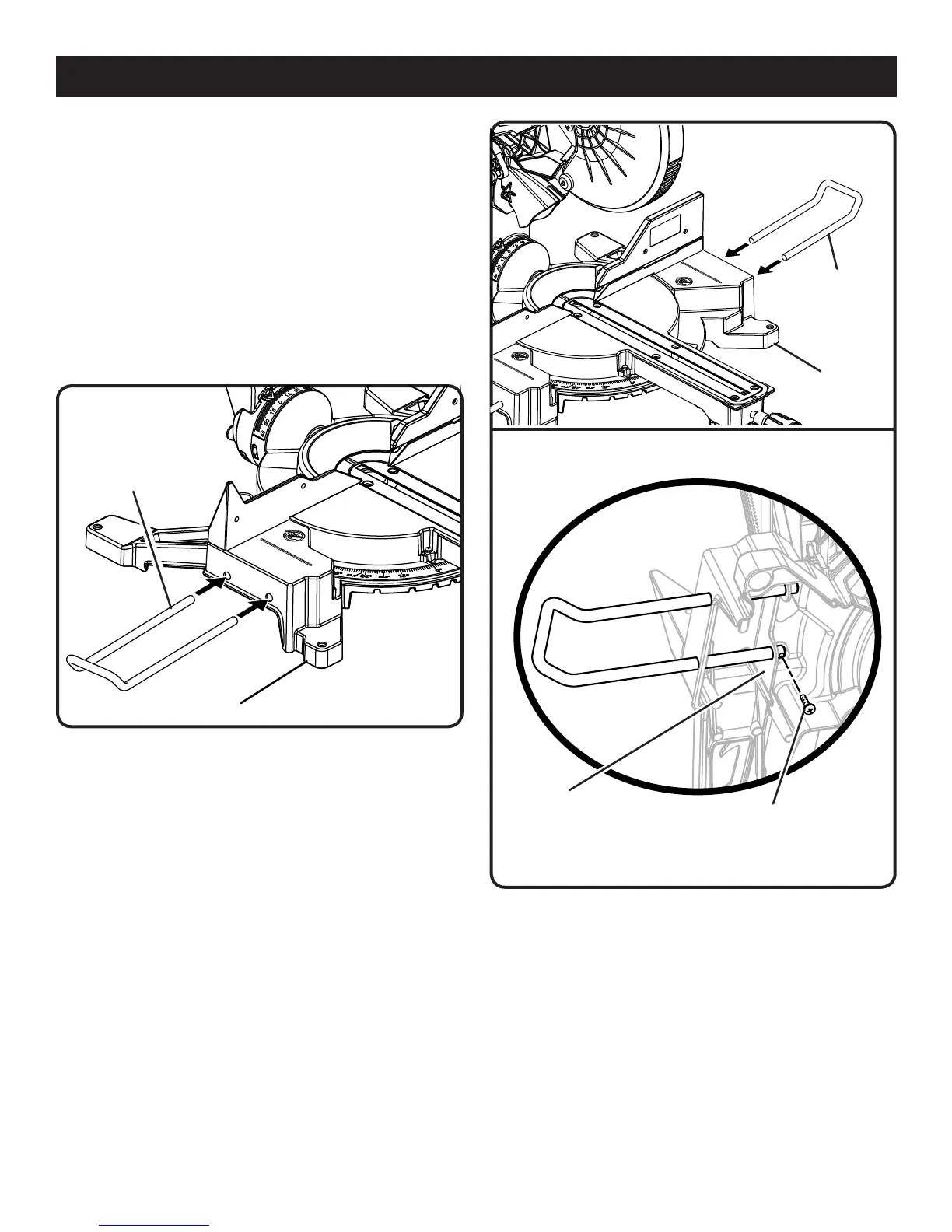 for use with the saw. Table extensions fit into the holes on