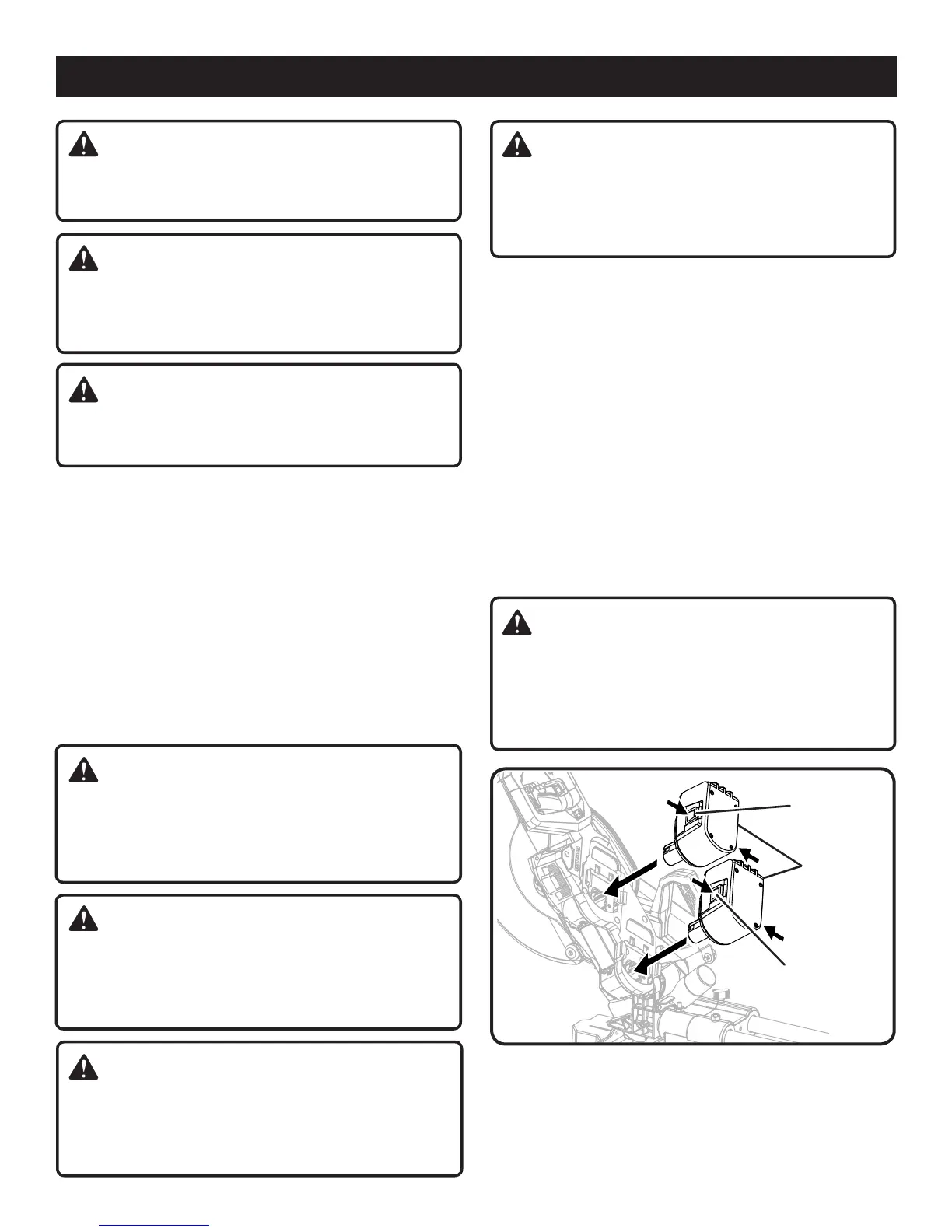 (3 po) de la lame. Ne jamais effectuer de coupes à main levée