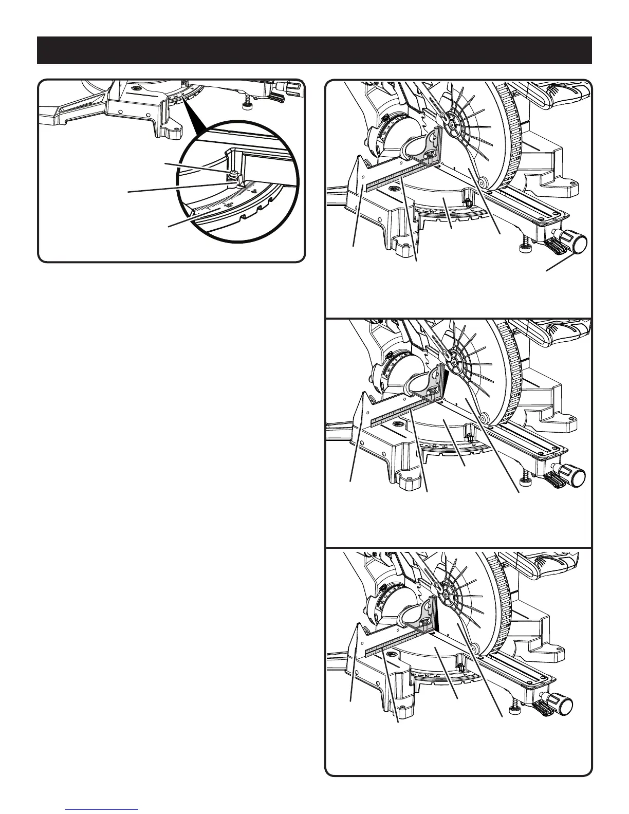 la mesa de ingletes). Apriete la perilla de fijación de bisel.