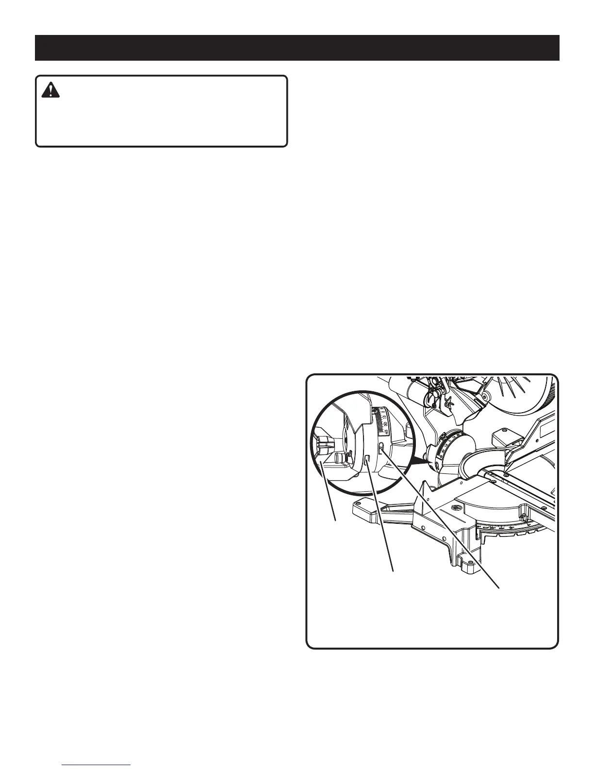 ajustando la perilla de seguridad del bisel e inclinando la sierra.