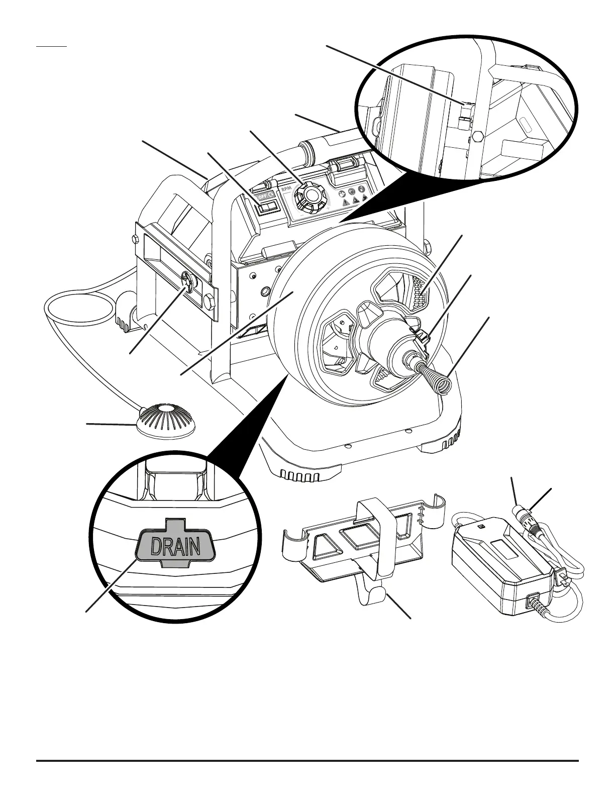 F - Drain tab (languette de vidange, lengüeta de