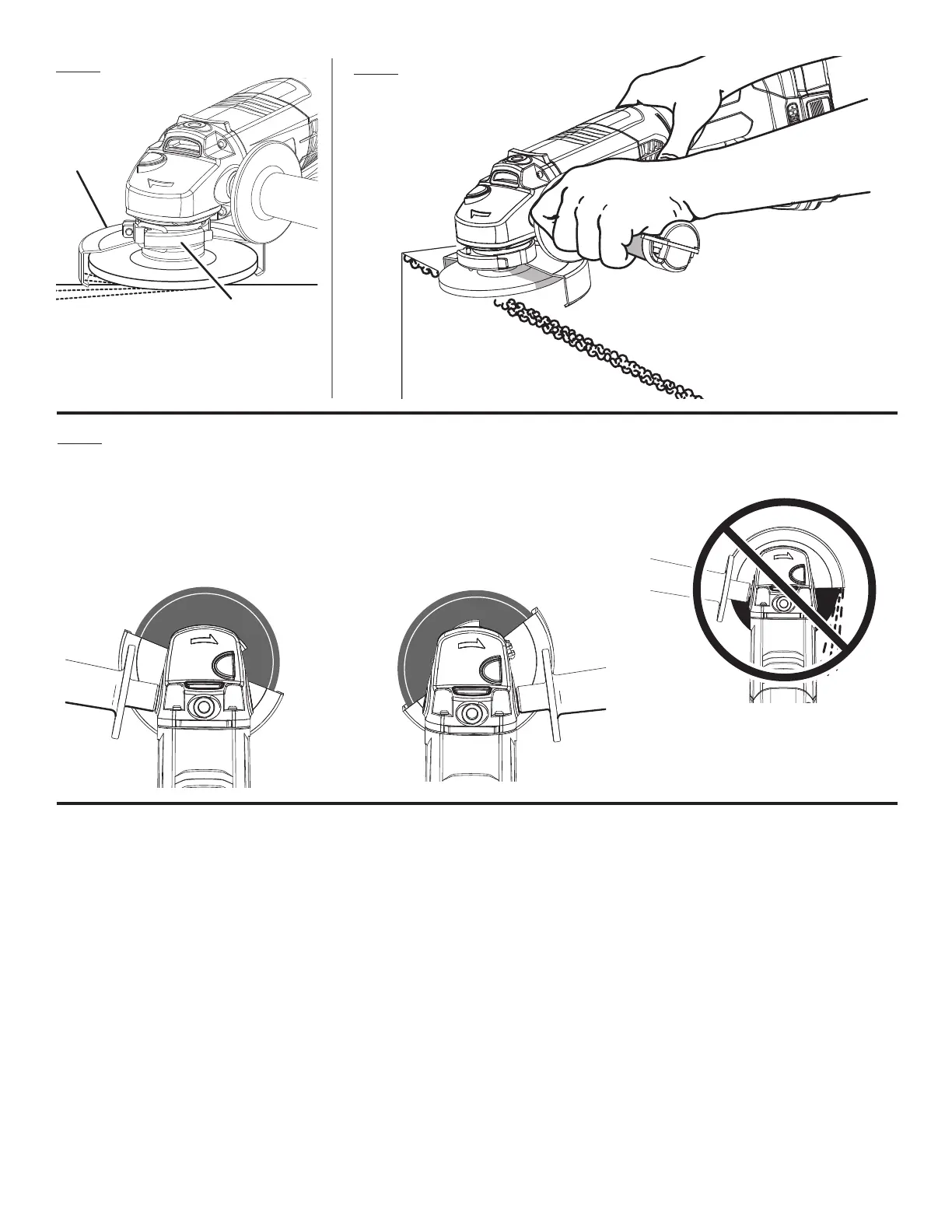 A - Toolless guard (garde sans outil, protección