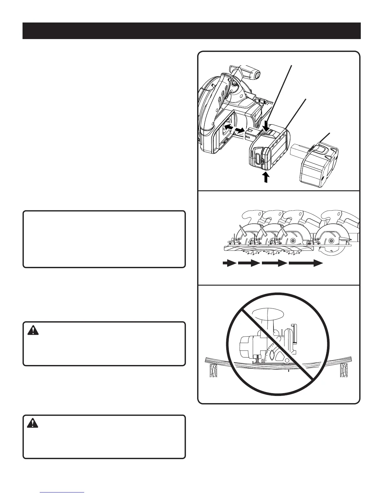 slide the battery pack into the saw.