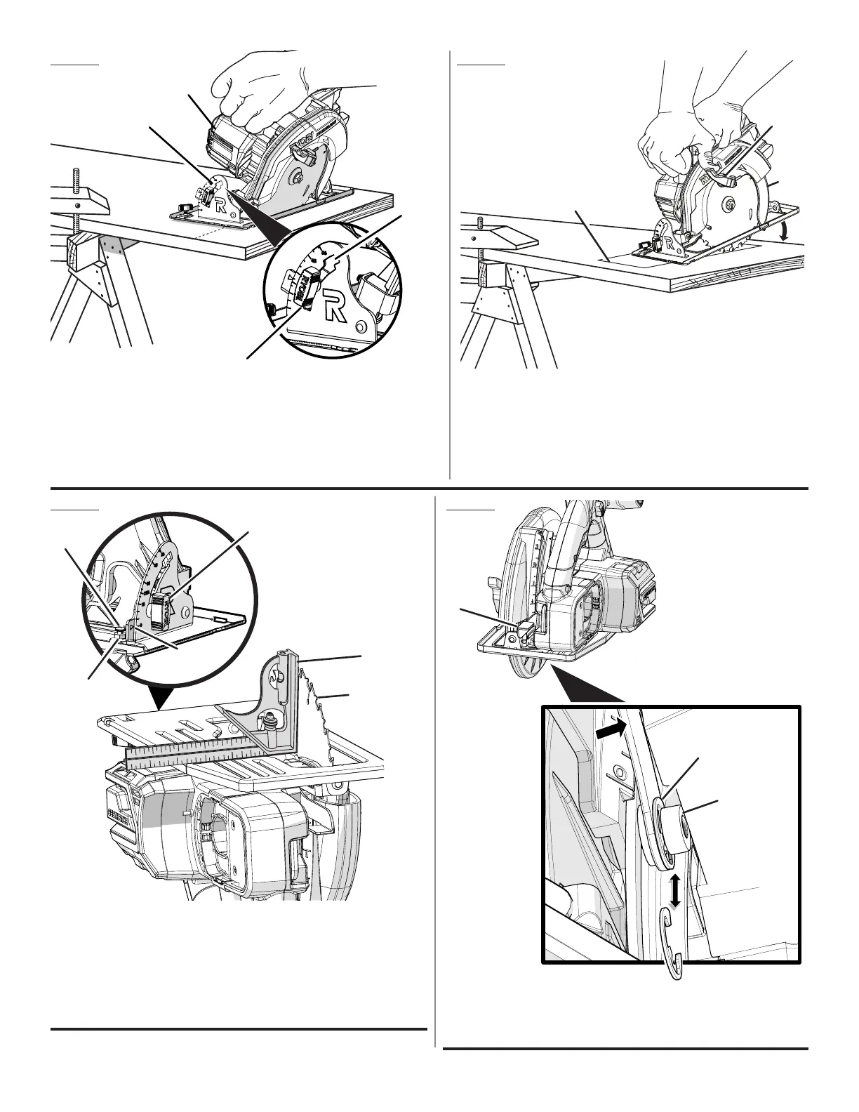 A - Lower blade guard handle (poignée de garde de lame inférieur,