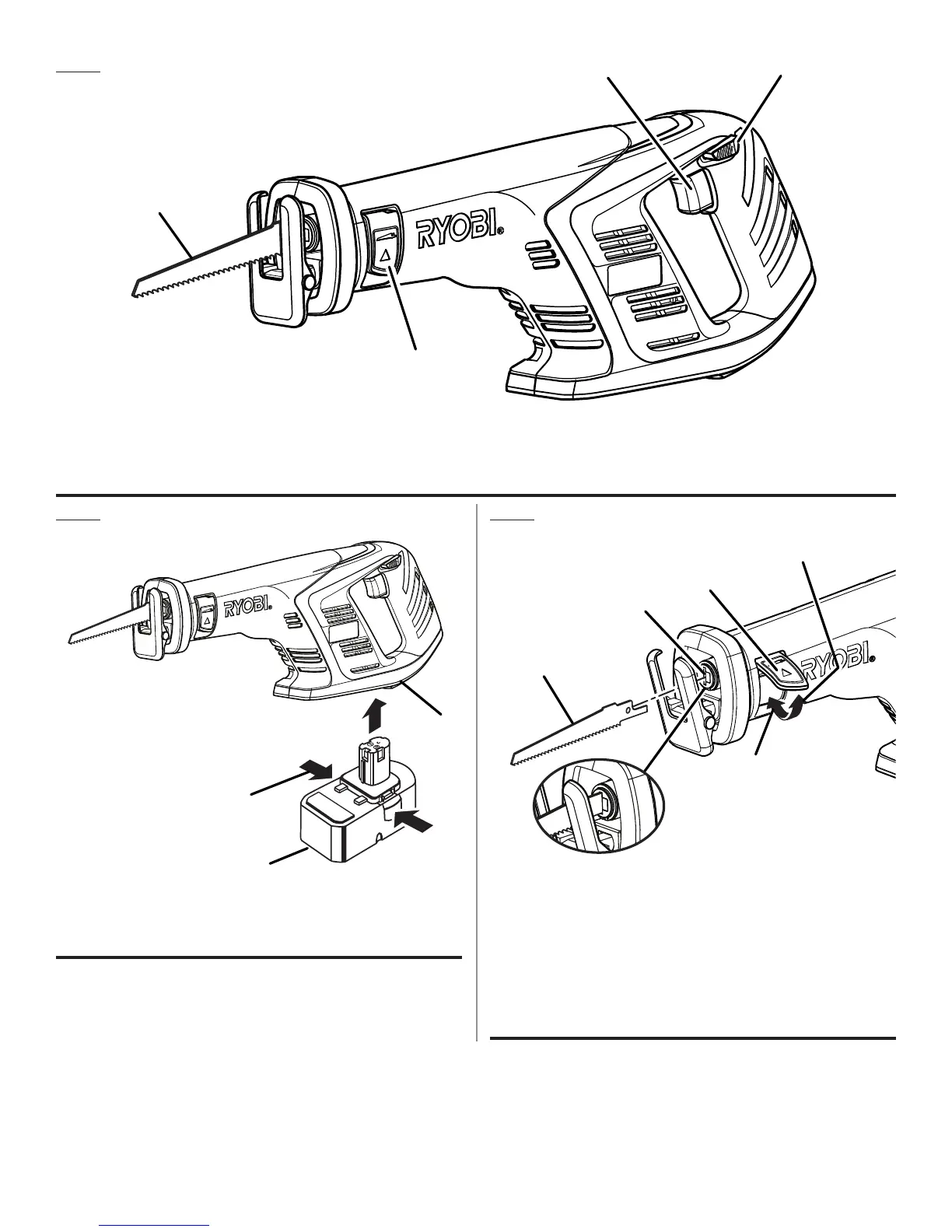 B - Blade clamp lock / release lever (levier verrouillage/déverrouillage de