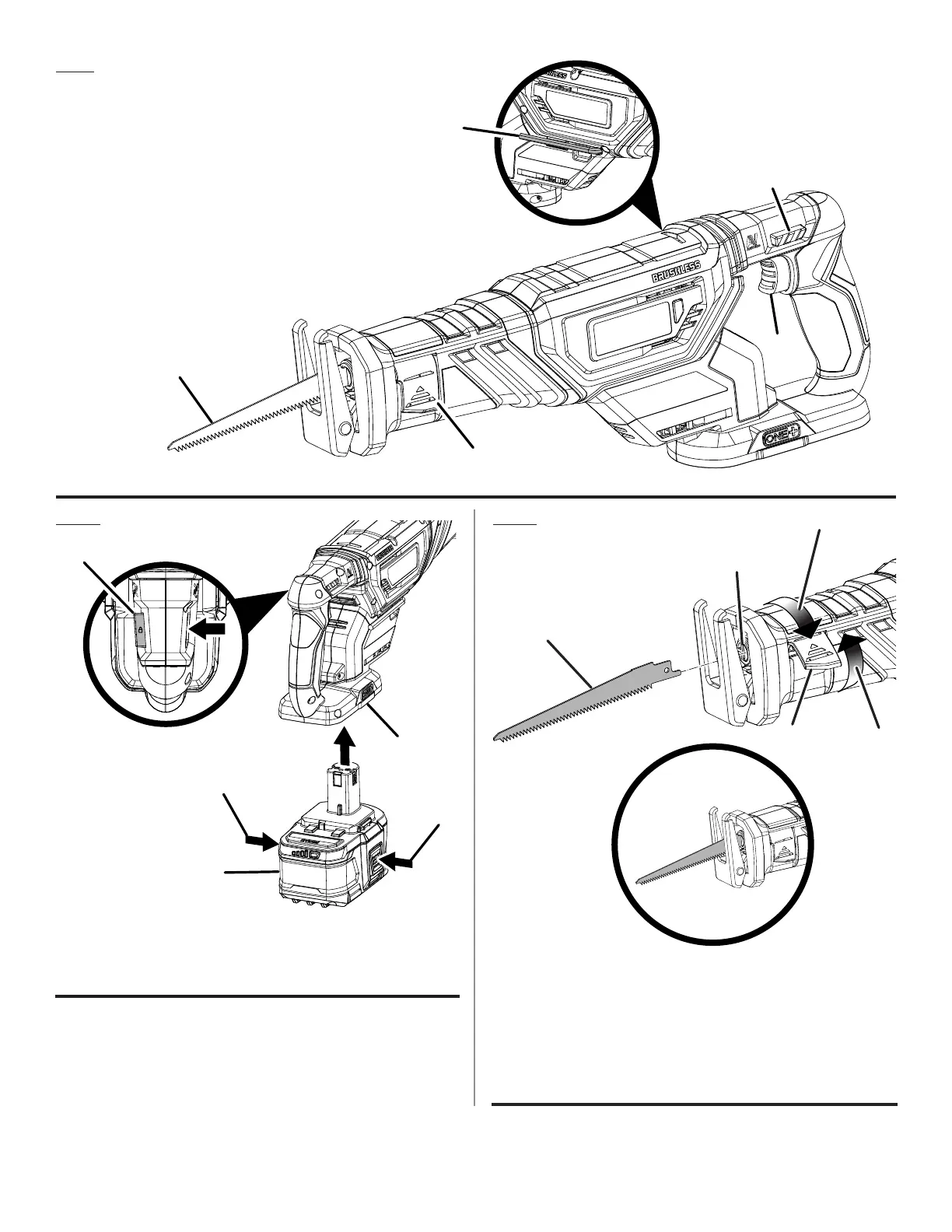 A - Blade clamp lever (levier de lame, palanca la mordaza de la hoja)