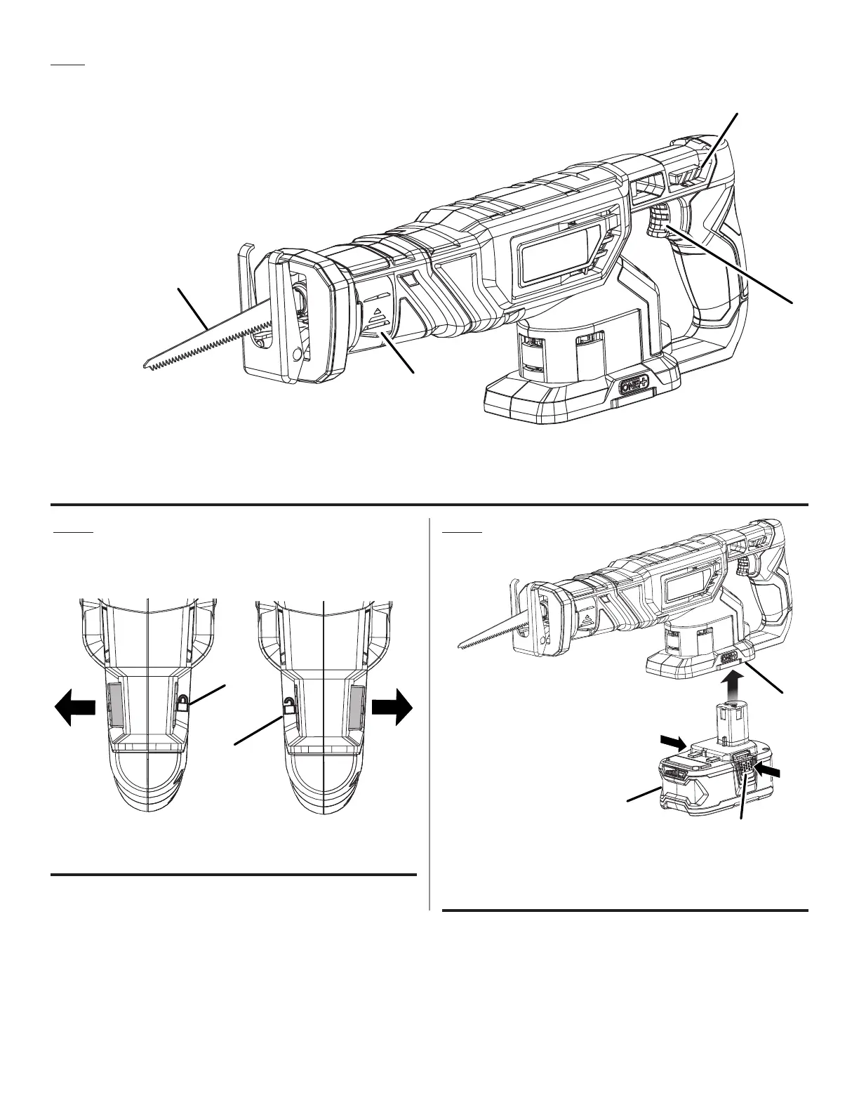 B - Blade clamp lever (levier de lame, palanca de la mordaza de la hoja)