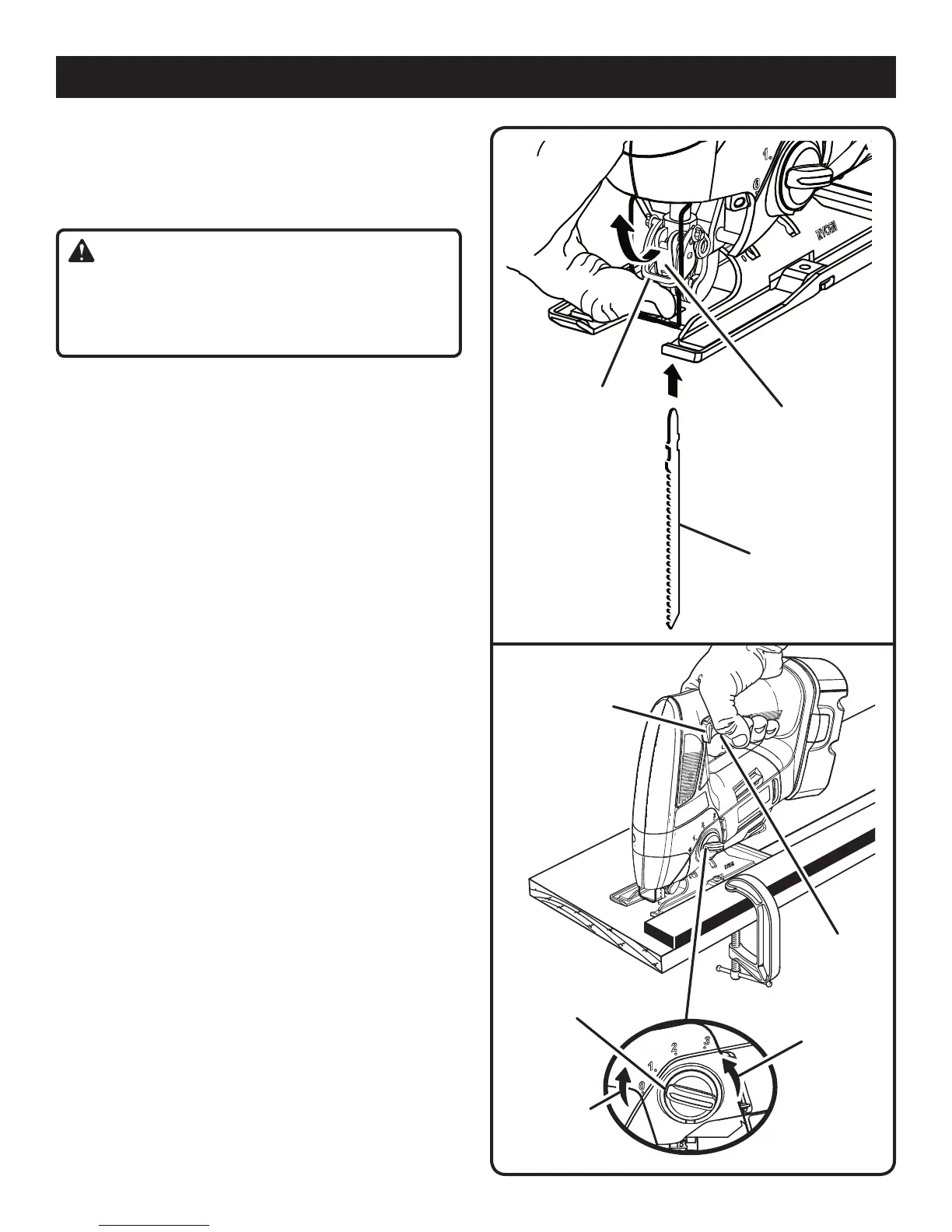 Introduzca la hoja entre la mordaza y la barra de la sierra.