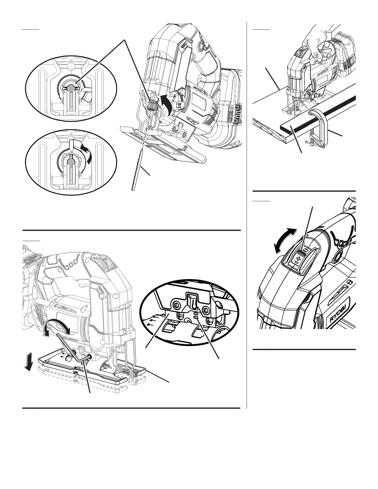 A - Toolless blade clamp (verrouillage du porte-
