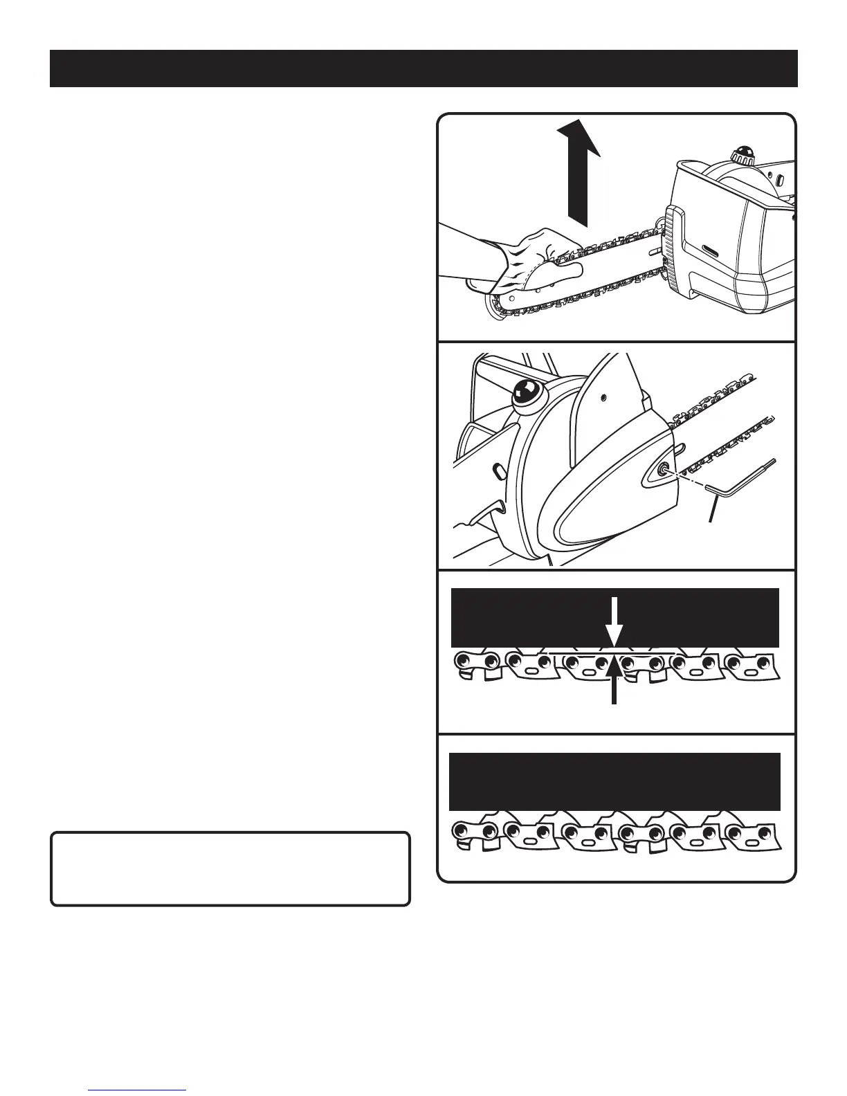 NOTE: If chain is too tight, it will not rotate. Loosen the