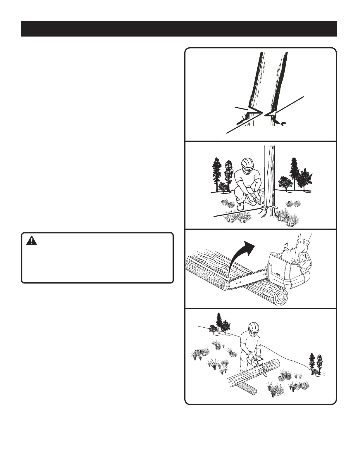 n Dès que l’arbre commence à tomber, arrêter la scie