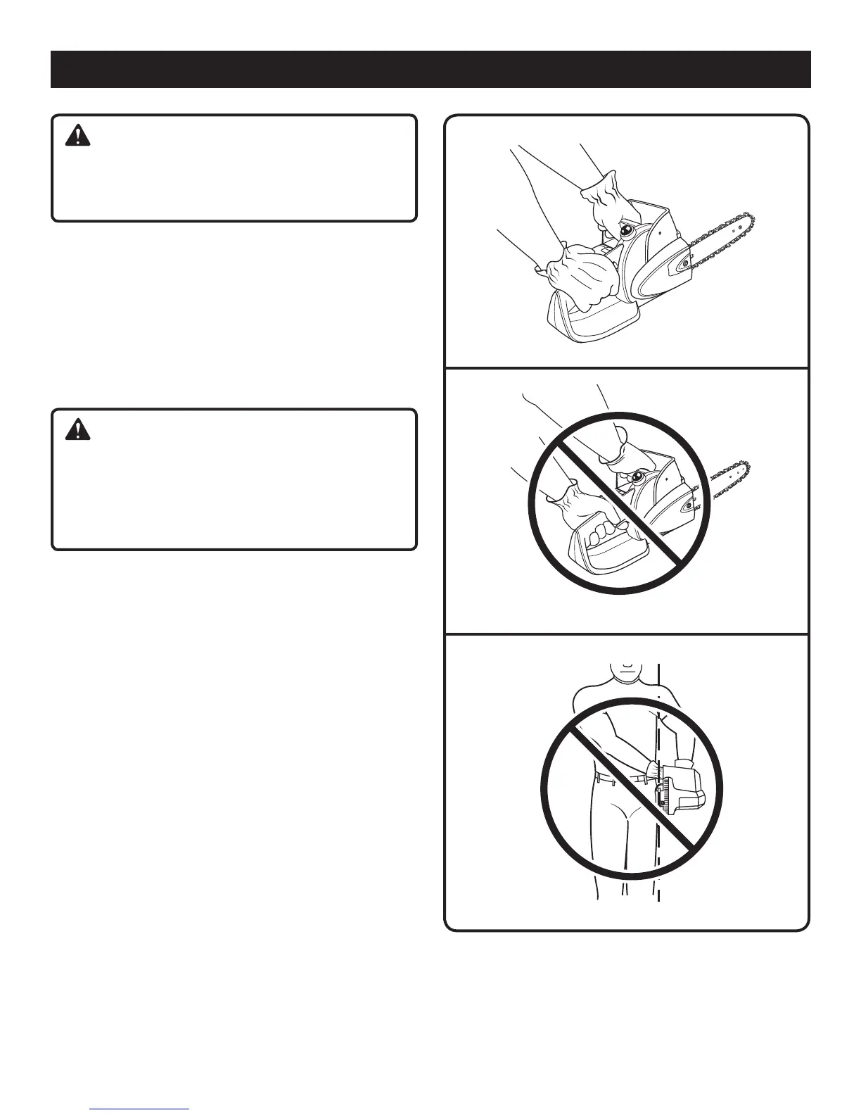n Toujours tenir solidement la scie lorsque le moteur