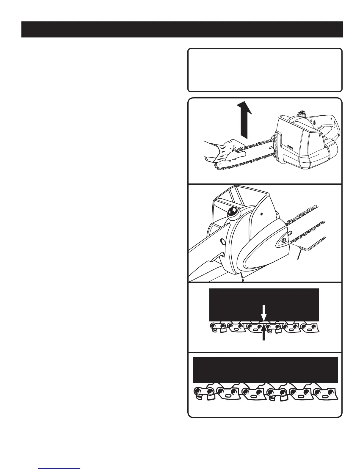 chaîne. S’assurer que la vis du guide n’est serrée