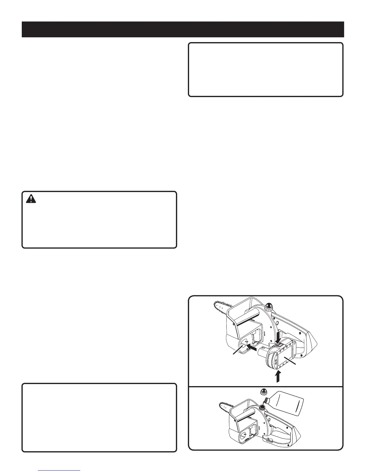 n Coloque el paquete de baterías en la motosierra. Alinee
