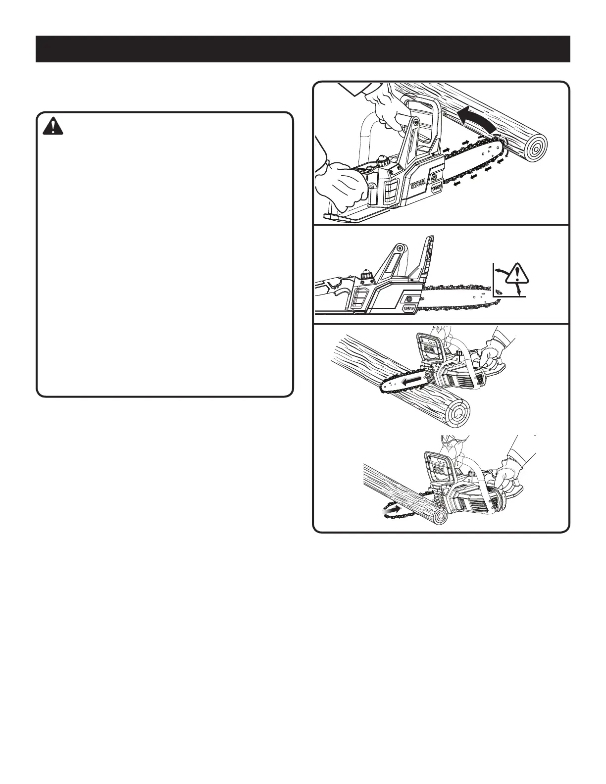 tions can cause loss of saw control which can