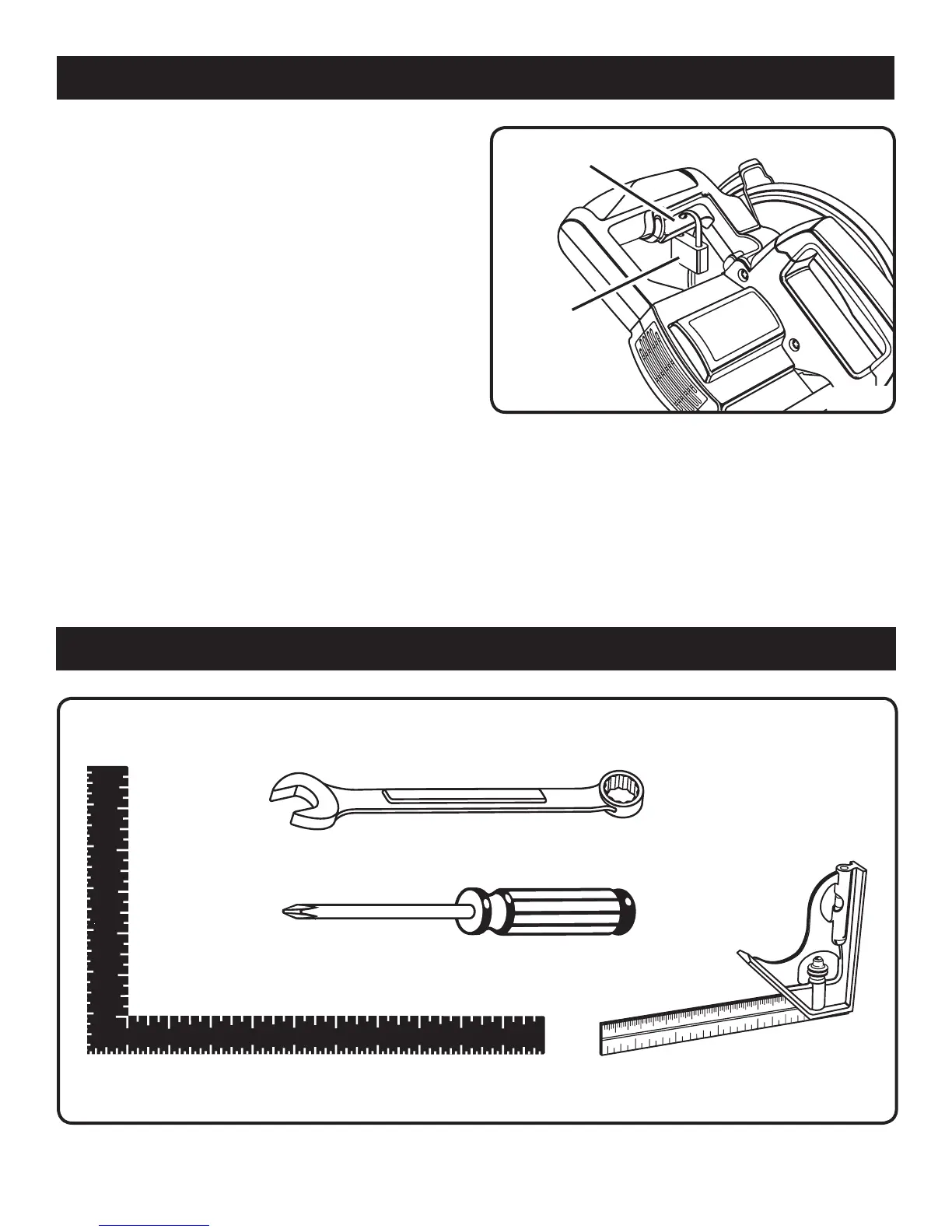 The following tools are needed for making adjustments or installing the blade: