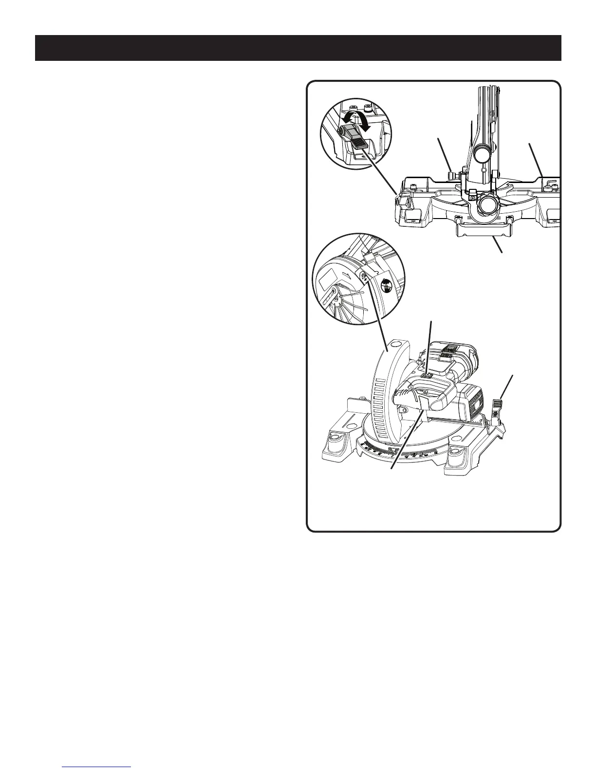 biseau pour débloquer la scie et permettre l’inclinaison de