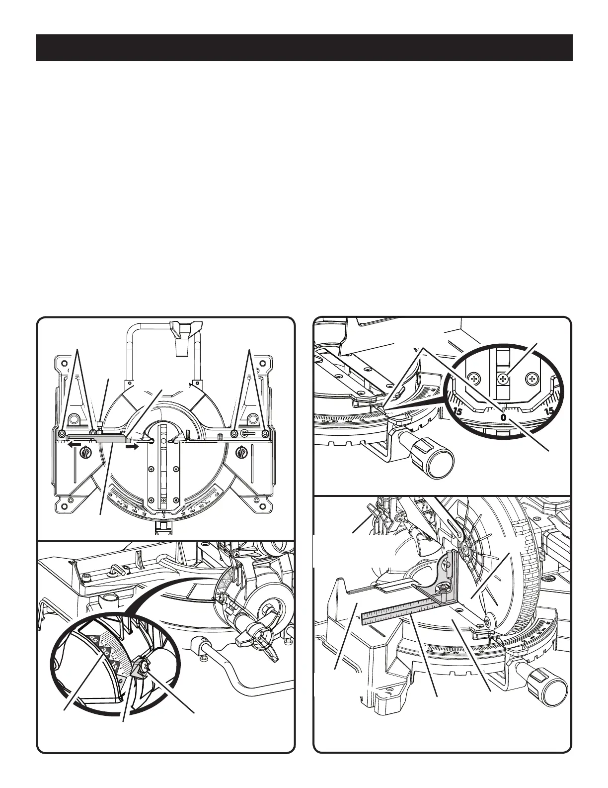 d’angle de biseau et un pour le réglage d’onglet. Une fois les