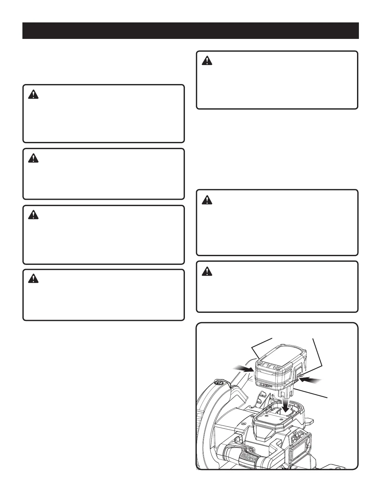 Insérer le bloc-piles dans la scie. Aligner la saillie du bloc de