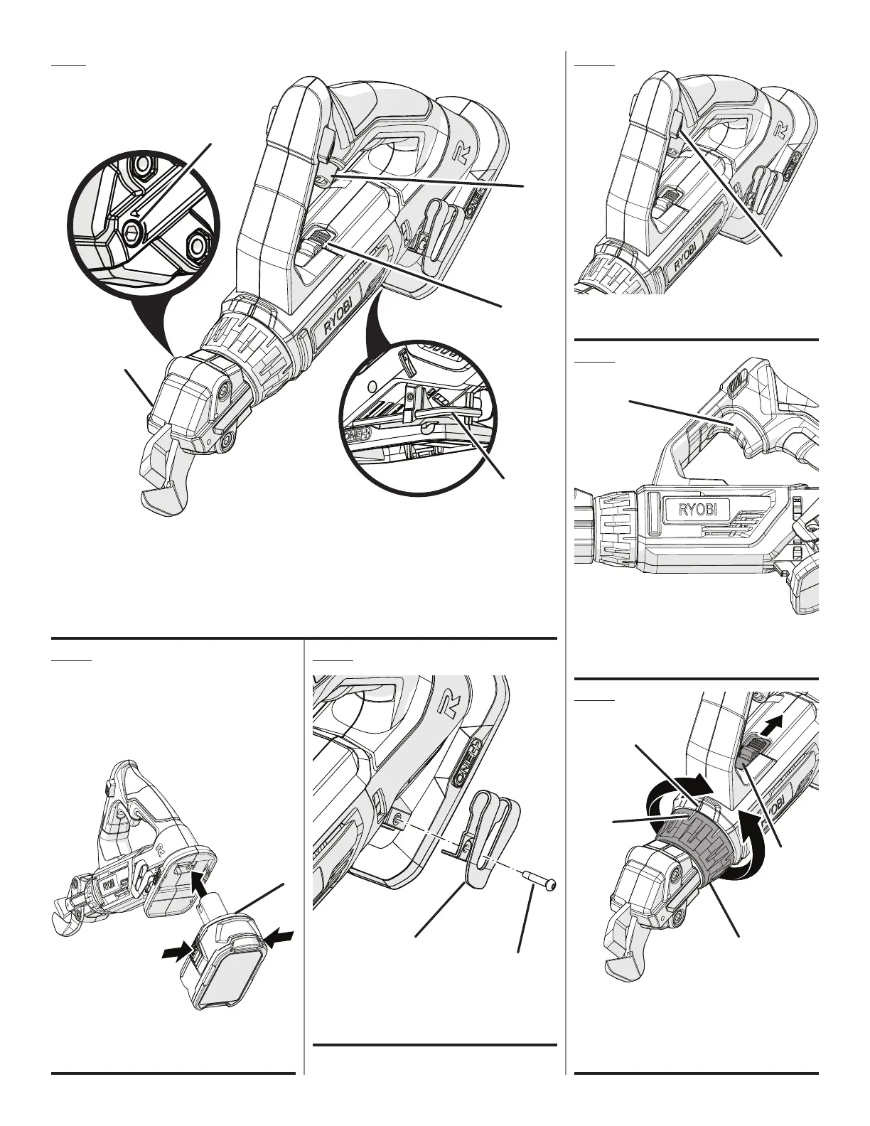 D - Gap adjustment screw (vis d’ajustement du jeu de coupe, tornillo de ajuste de distancia)