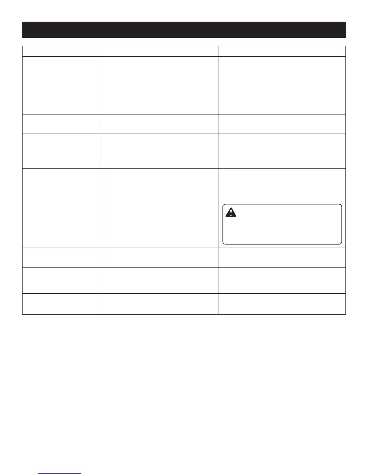 PROBLEM POSSIBLE CAUSE SOLUTION