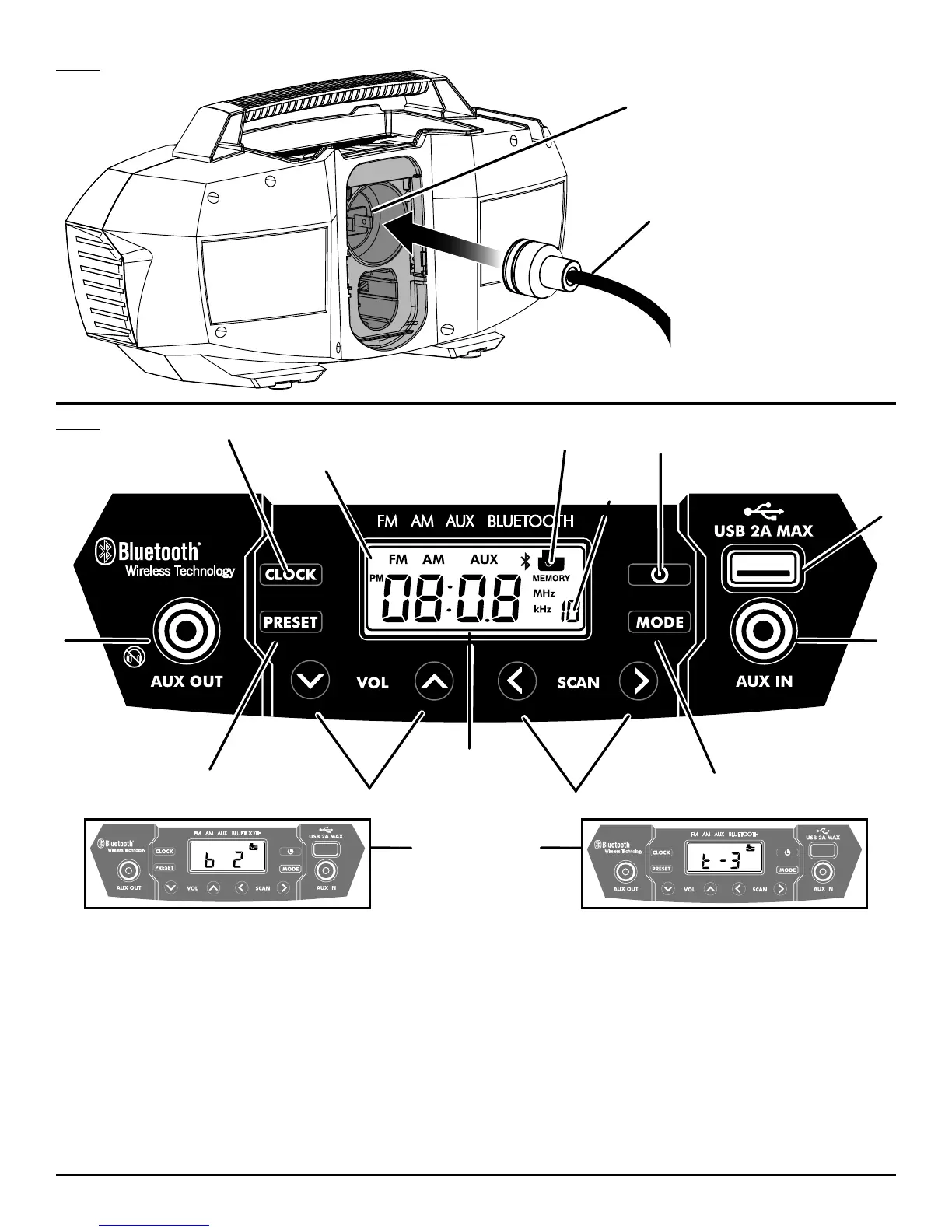 A - Clock button (bouton l'horloge, botón de reloj)