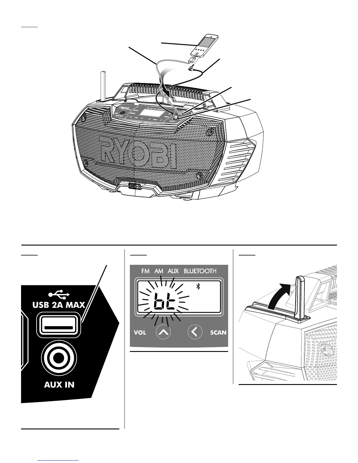 C - USB dedicated charging port (cable not included) (port USB dédié à la charge [câble non fournie], puerto de carga exclusiva para USB