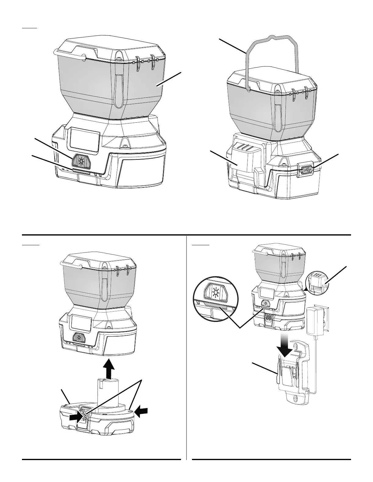 B - Power button (bouton d’alimentation, botón de encendido/