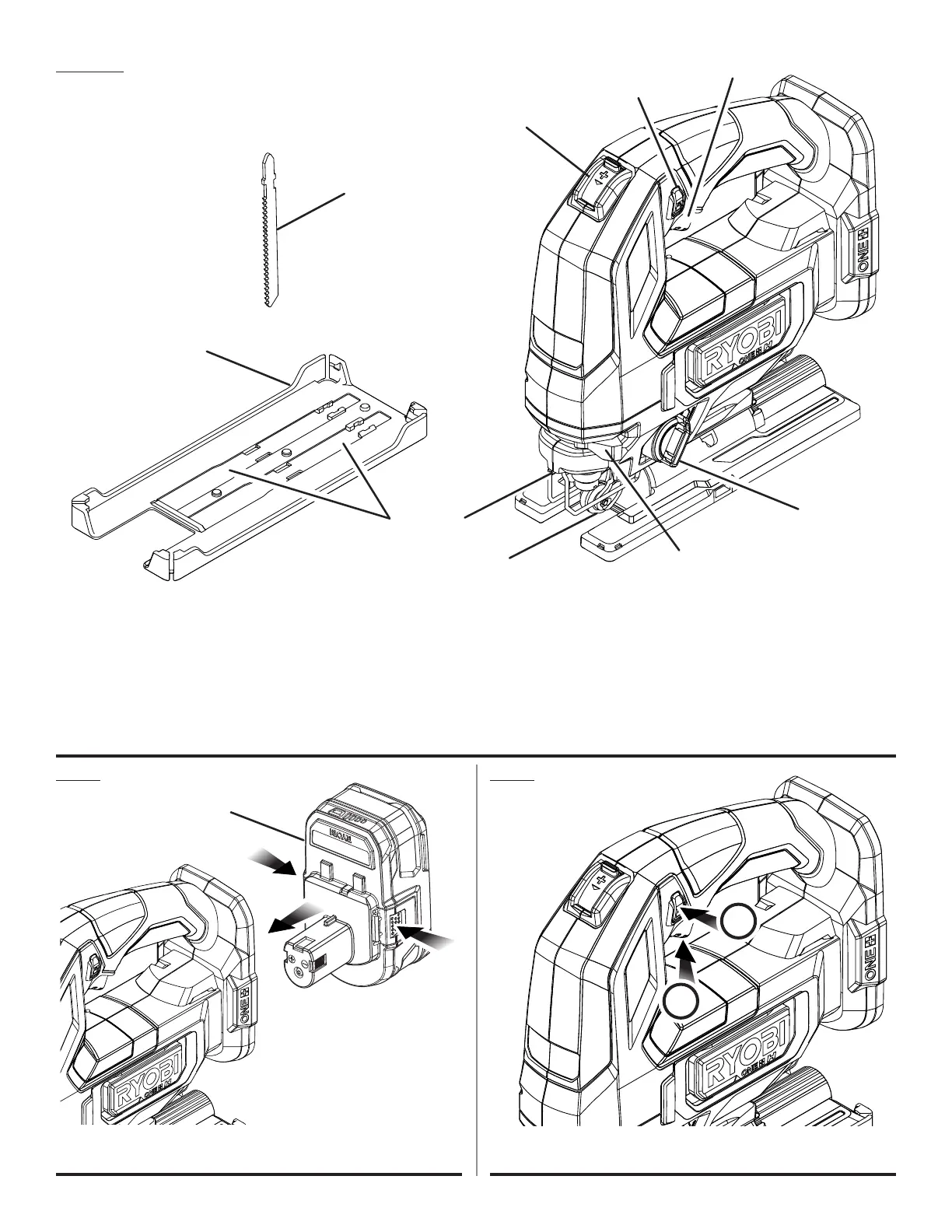 J - Blade clamp lever (levier de verrouillage de lame, palanca de la mordaza