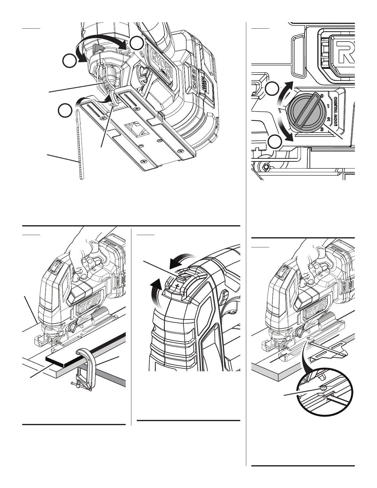 A - Toolless blade clamp (verrouillage du porte-lame, mordaza de la hoja de apriete sin herramienta)