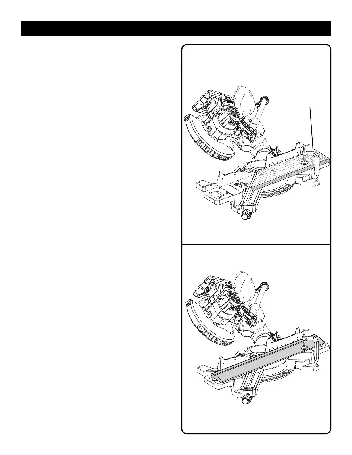 Glisser la tête de la scie complètement vers l’arrière et serrer