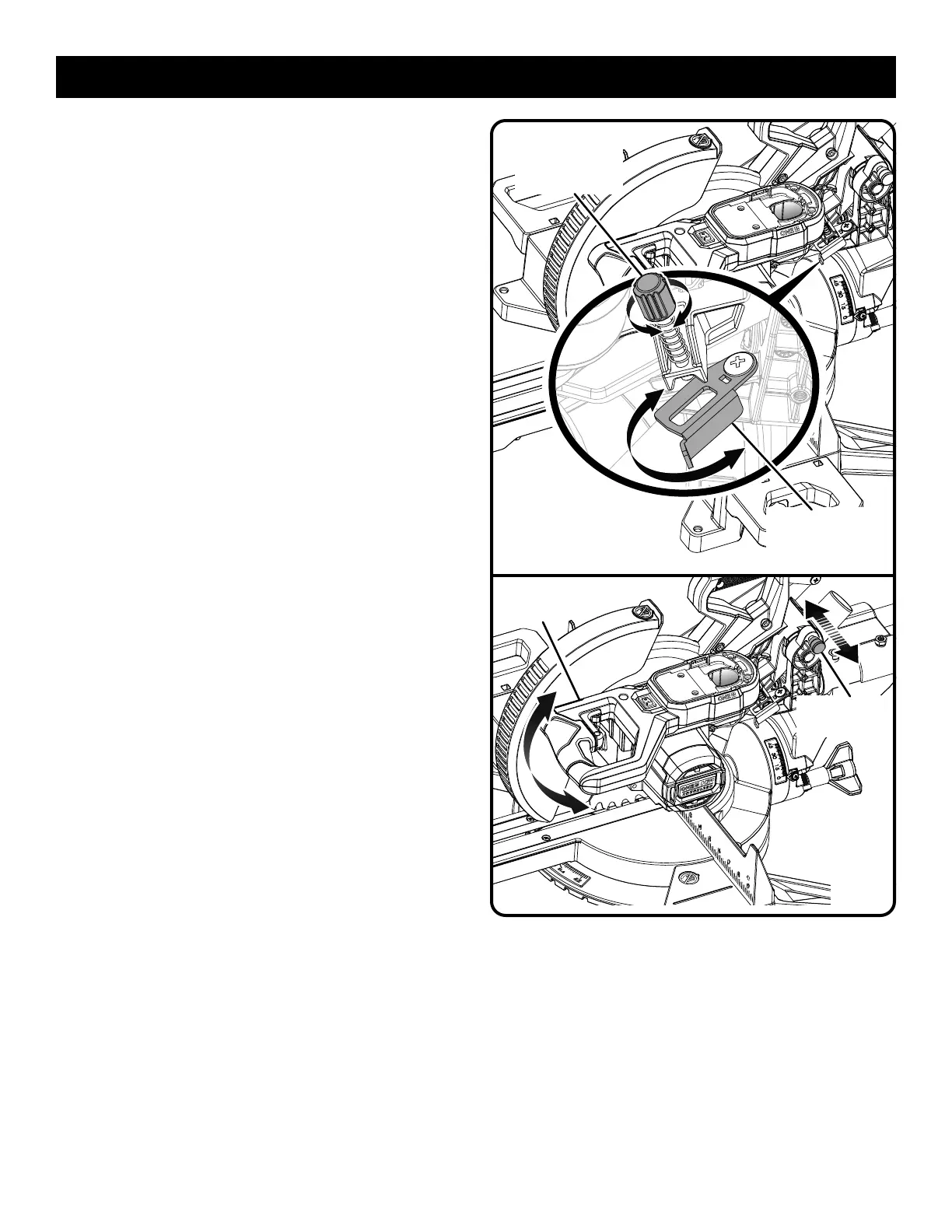 Cuando bloquee y desbloquee el brazo de la sierra, no es