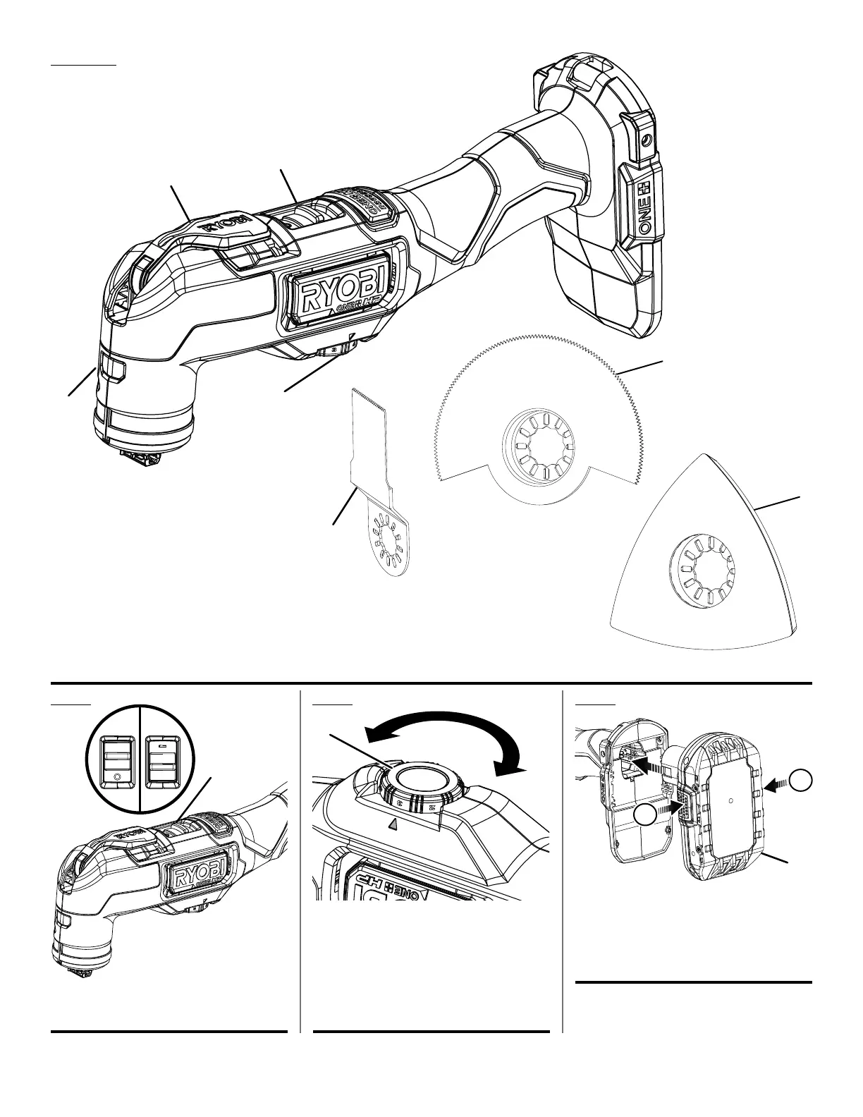 D - Blade release lever (relever pour levier la lame, palanca de liberación de la hoja)