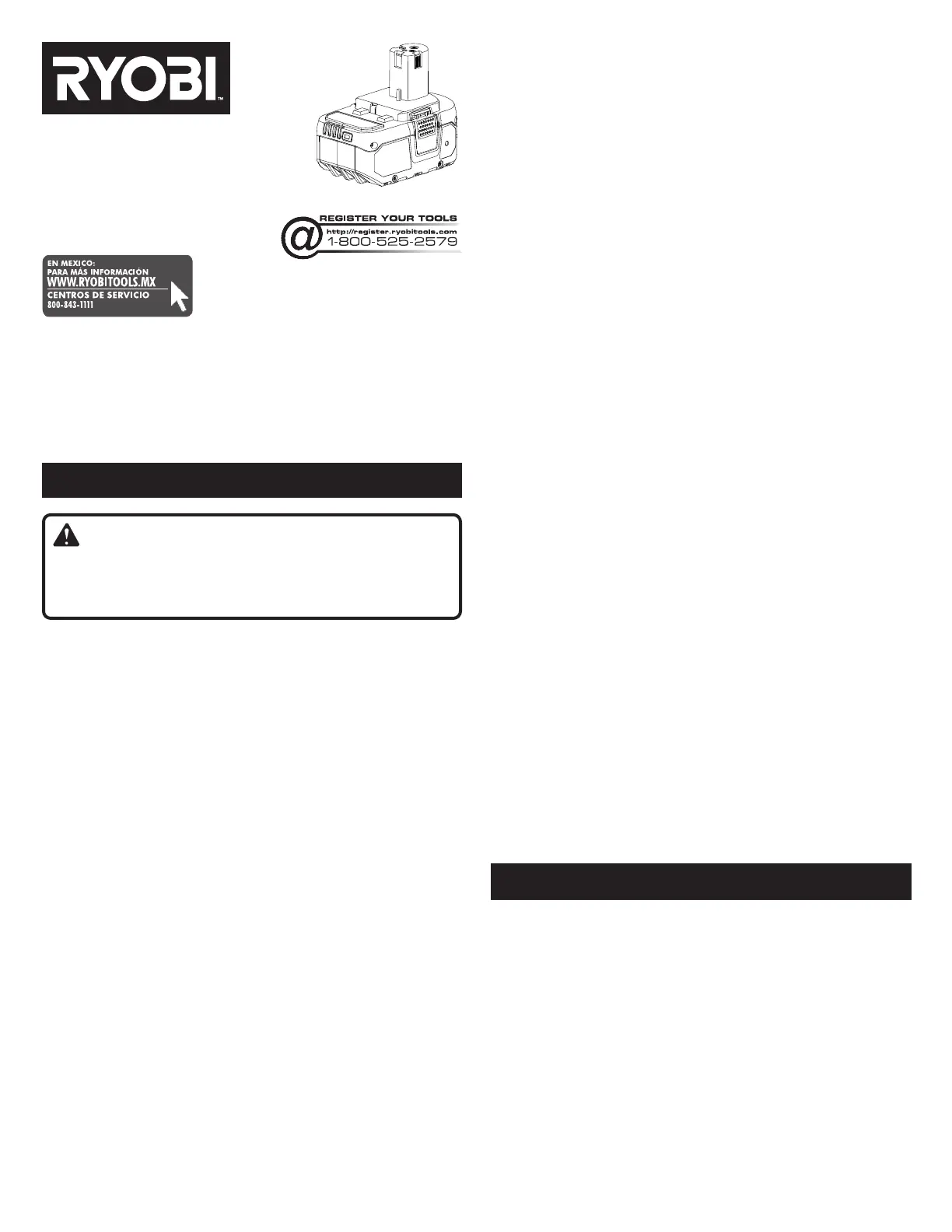 o iones de litio de RYOBI™ ONE+™ de 18 V. Usar otros