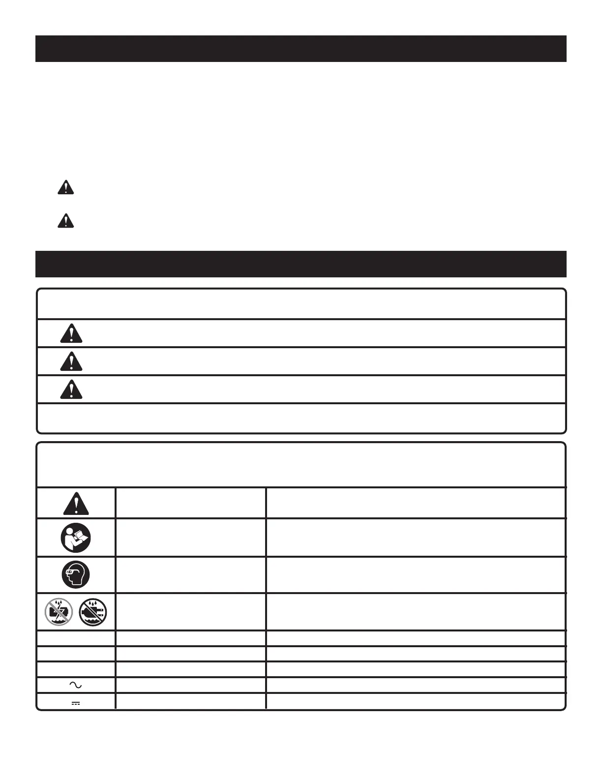 3. WARNING: Risk of injury, electric shock, fire, and damgage. Refer to the operator’s manual for size, type,