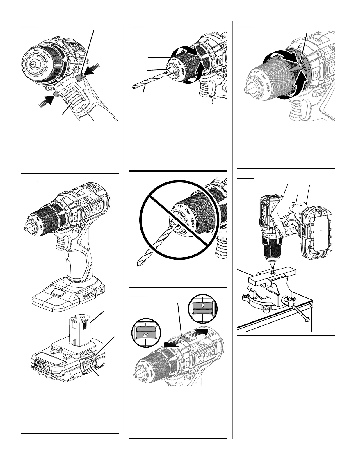 E - Lock (tighten) [lock (serrer), lock (asegurar)]