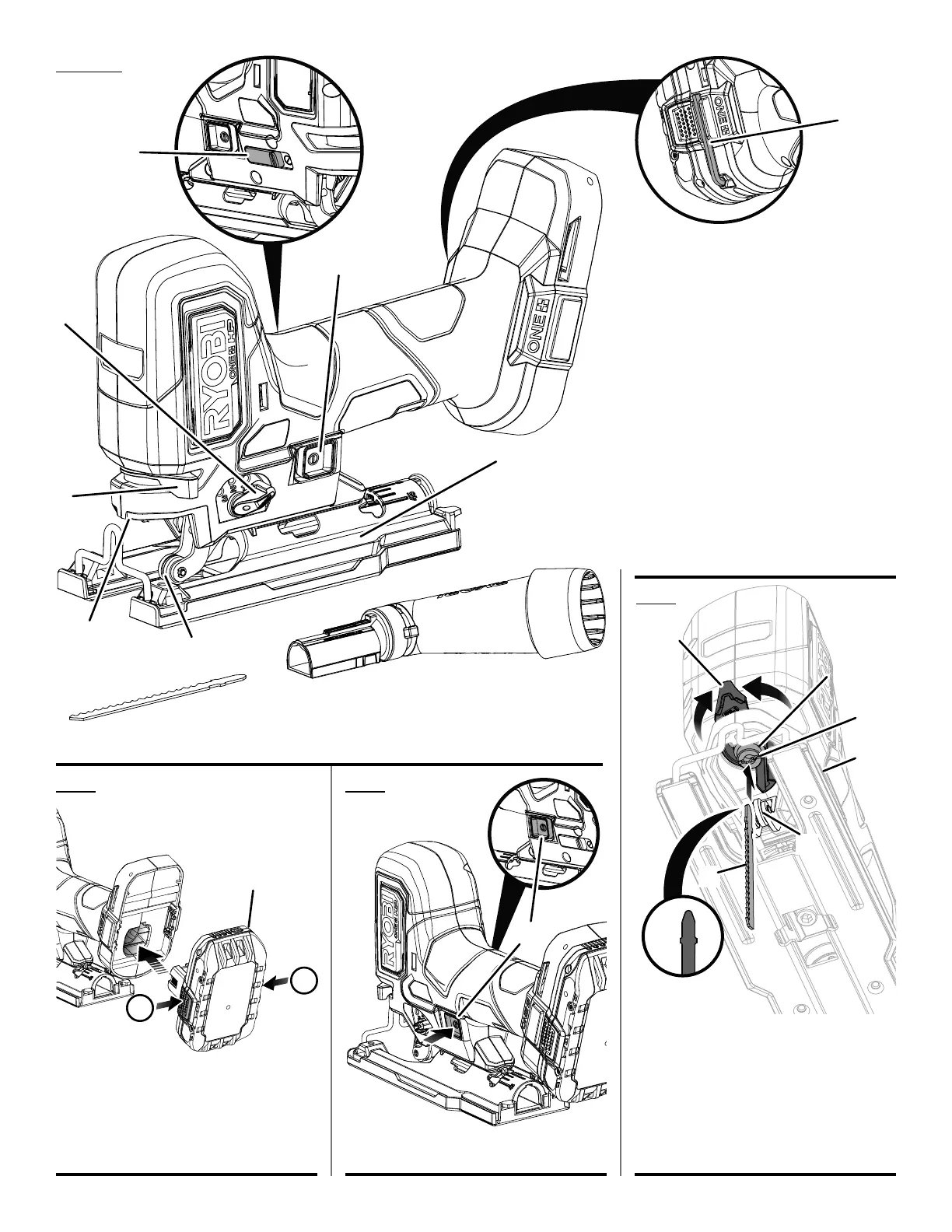 B - Blade clamp lever (levier de verrouillage de
