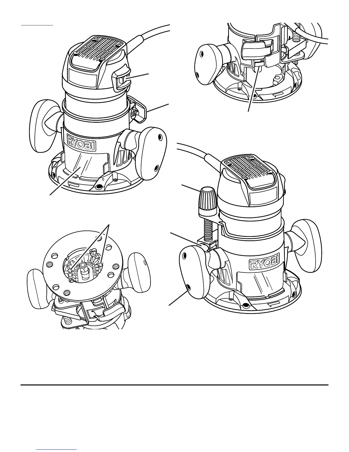 F - Depth adjustment knob (bouton de réglage de la profundeur, perilla de