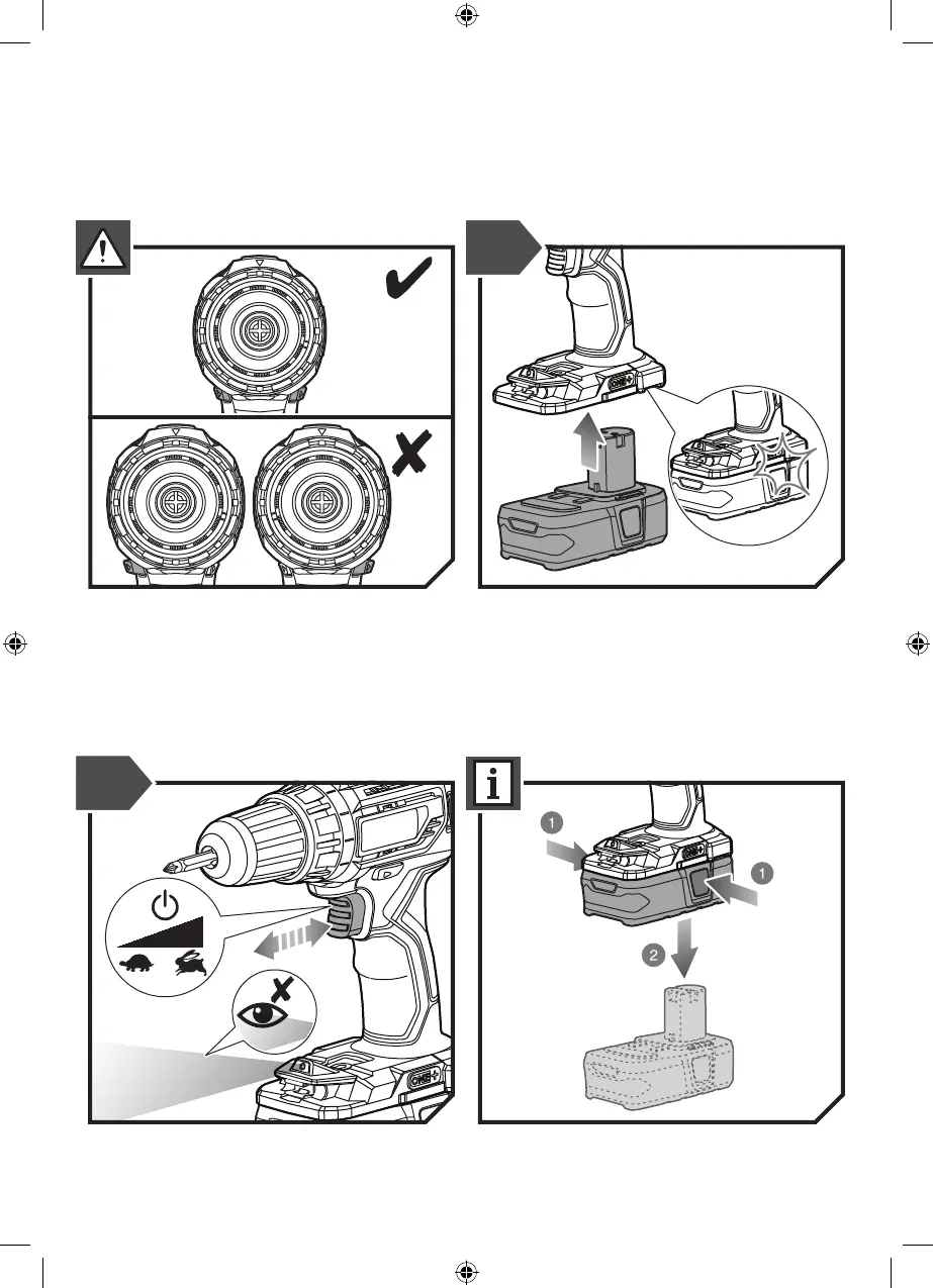 Ryobi R18DD4 - Operating Instructions - Part 2; Battery Installation and Removal; Trigger and LED Operation