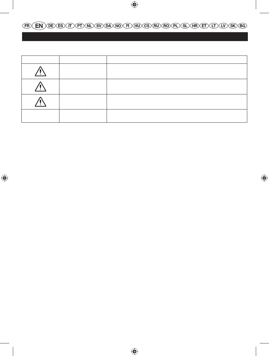 The following signal words and meanings are intended to explain the levels of risk associated with the product.