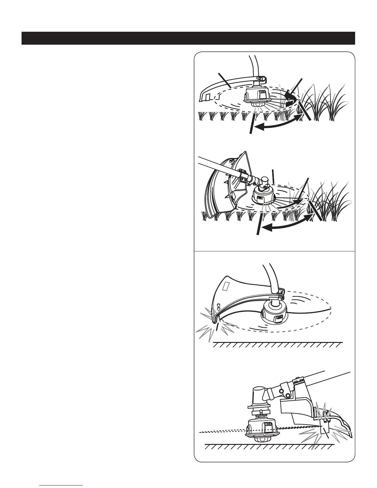 from right to left. The straight shaft trimmer cuts when