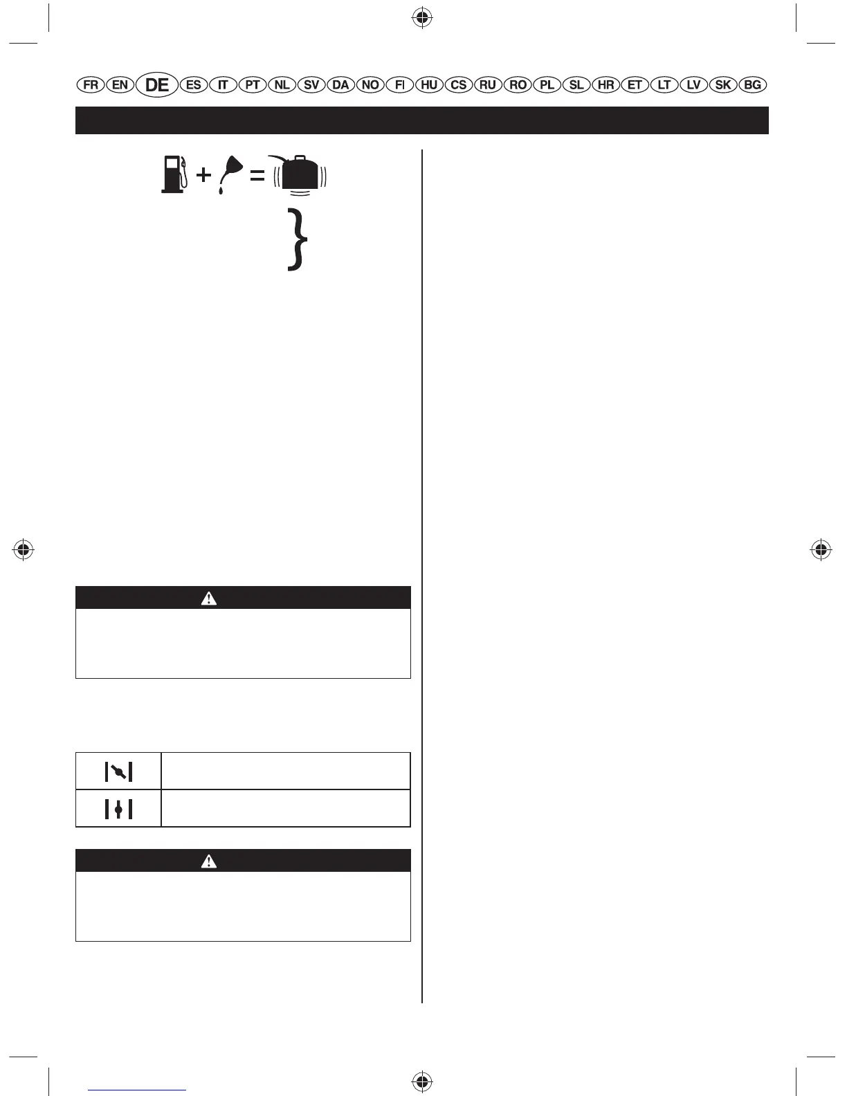 Ŷ Das Benzingemisch vorsichtig in den Tank leeren.