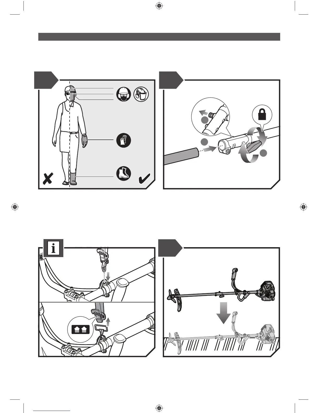 Attach the shoulder strap hanger. Lay the product on the ground.