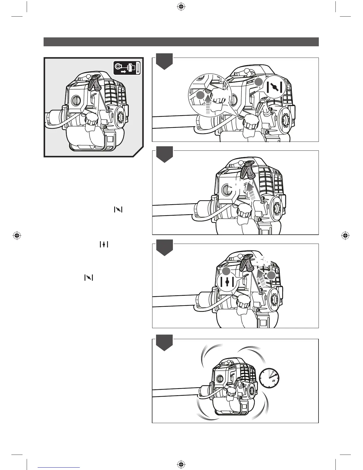 starter grip until the engine starts. Do not pull